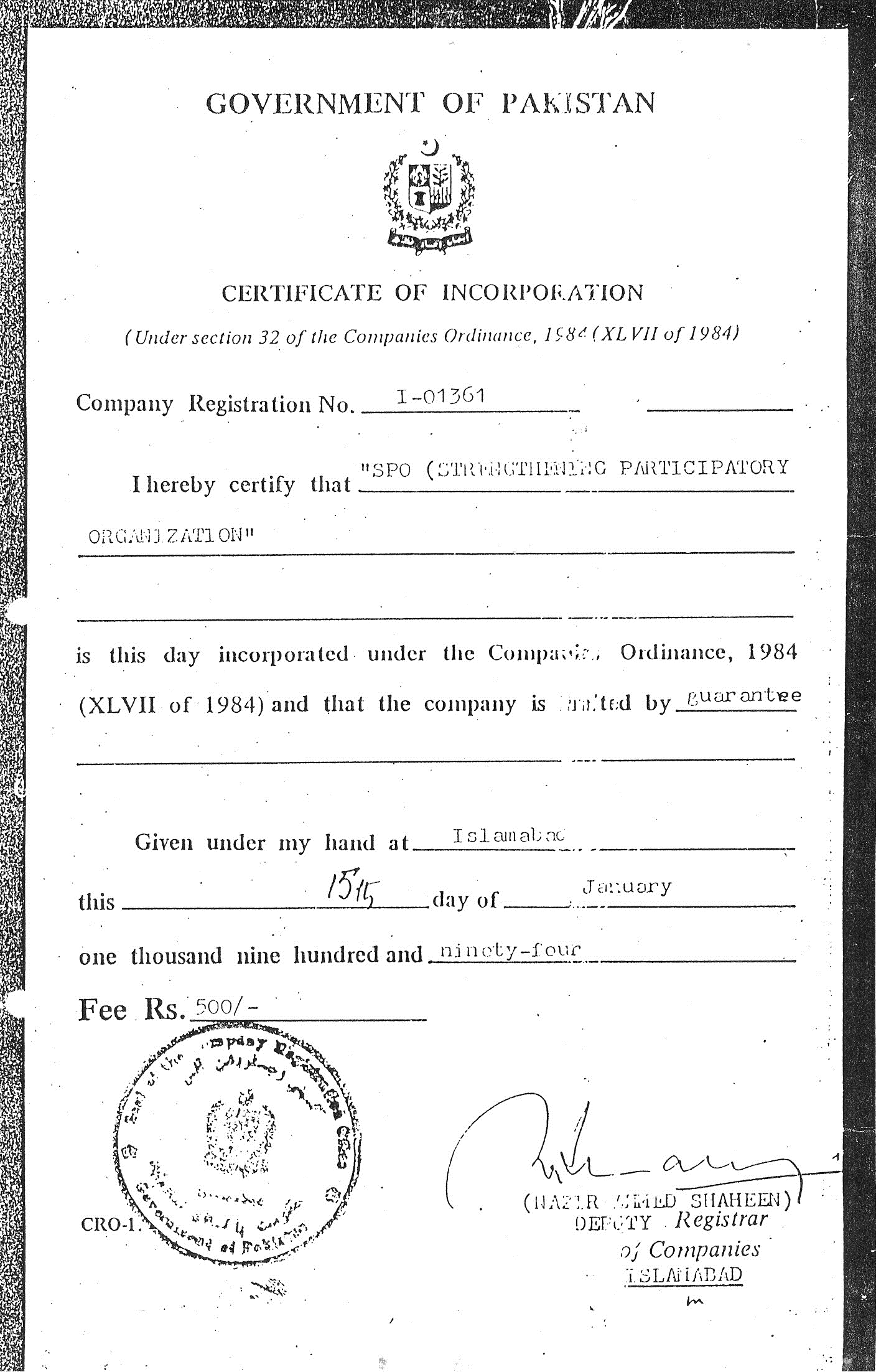 Registration Certificate